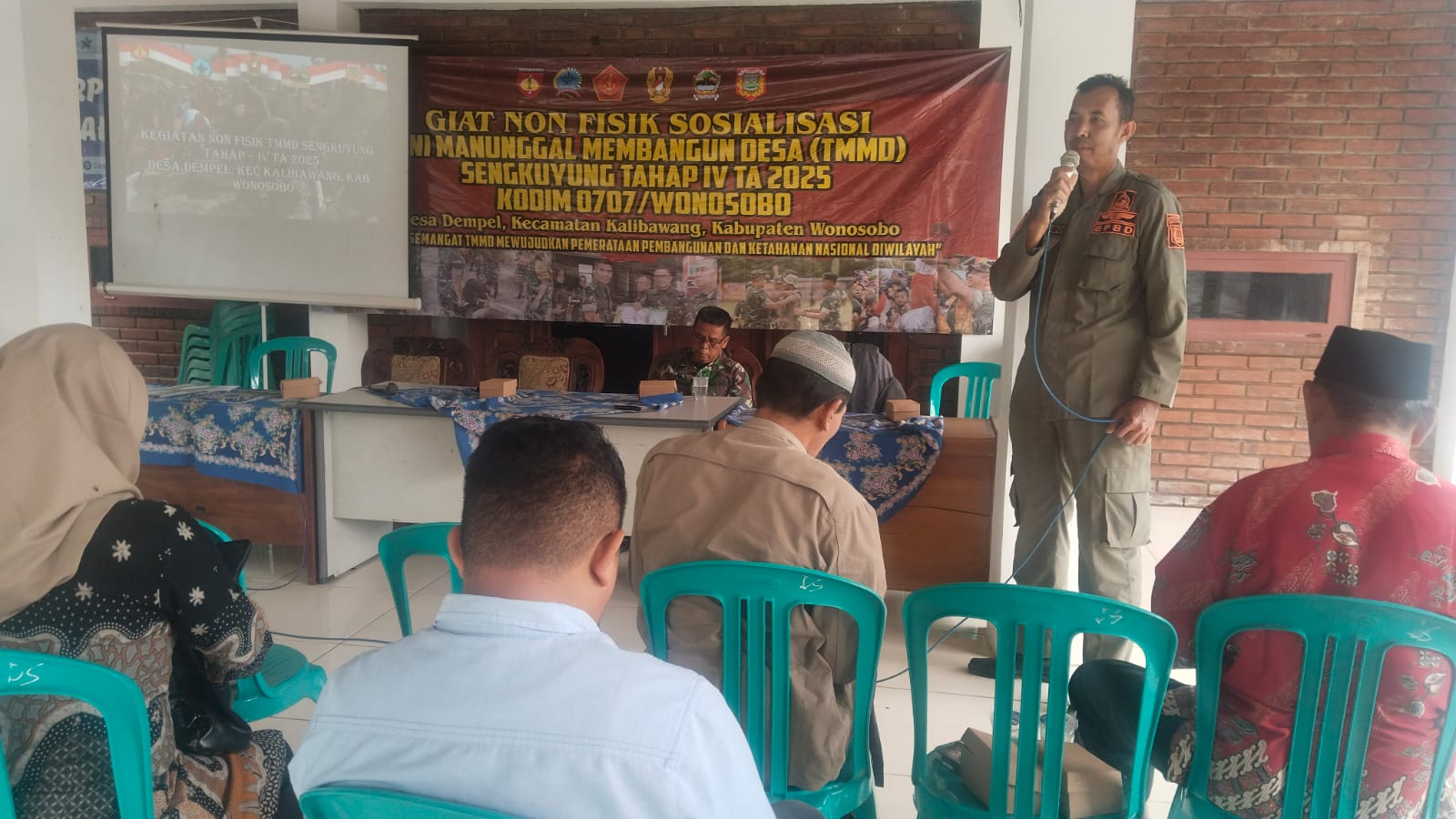 Matalensa—Wonosobo- Kodim 0707/Wonosobo intensifkan program non-fisik dalam pelaksanaan Tentara Manunggal Membangun Desa (TMMD) Sengkuyung Tahap IV di Desa Dempel, Kecamatan Kalibawang, Kabupaten Wonosobo. Salah satu kegiatan adalah penyuluhan kepada masyarakat setempat, yang bertujuan meningkatkan kesejahteraan dan ketangguhan warga desa. (22/10/2025)