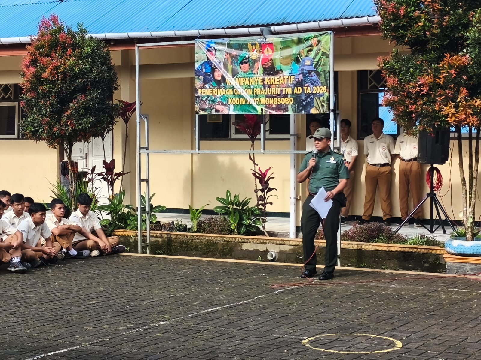 Matalensa || Wonosobo – Komando Distrik Militer (Kodim) 0707/Wonosobo terus berupaya menjaring minat generasi muda untuk mengabdi kepada bangsa dan negara melalui jalur TNI Angkatan Darat. Terbaru, sosialisasi pendaftaran penerimaan anggota TNI dilaksanakan di SMA Negeri 1 Watumalang pada Selasa (20/1/2026).