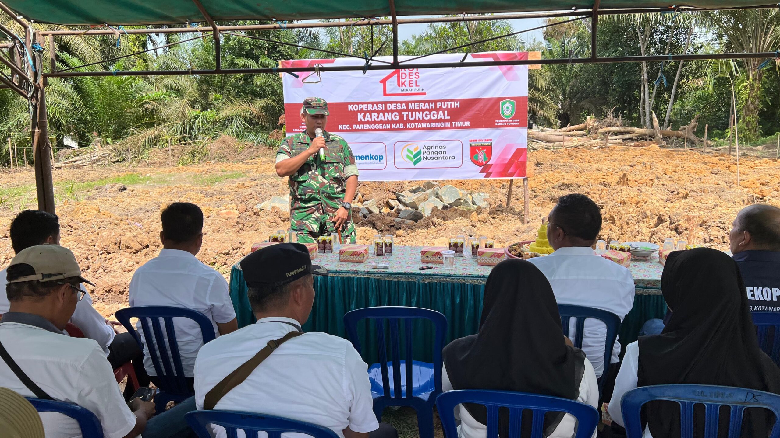 Matalensa || Kotawaringin Timur- Komandan Kodim 1015/Sampit Letkol Inf Dwi Candra Setyawan, menghadiri sekaligus memimpin acara peletakan batu pertama pembangunan Gerai Koperasi Merah Putih di Desa Karang Tunggal, Kec.Parenggean, Kab.Kotawaringin Timur, Rabu( 26/11/2025)