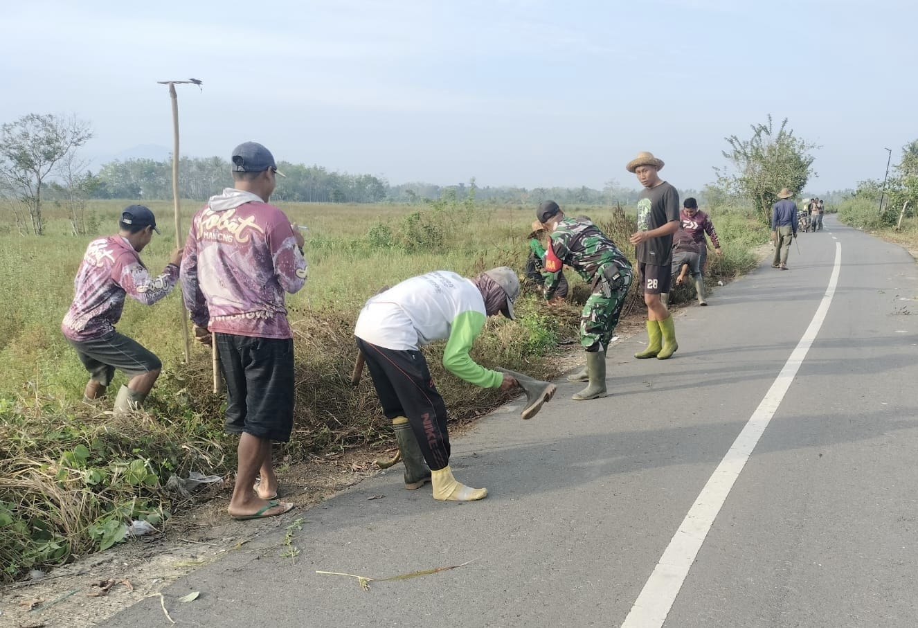 Koptu Rubi Amrullah Pimpin Warga Mahela Bersihkan Jalan Sepanjang 900 Meter