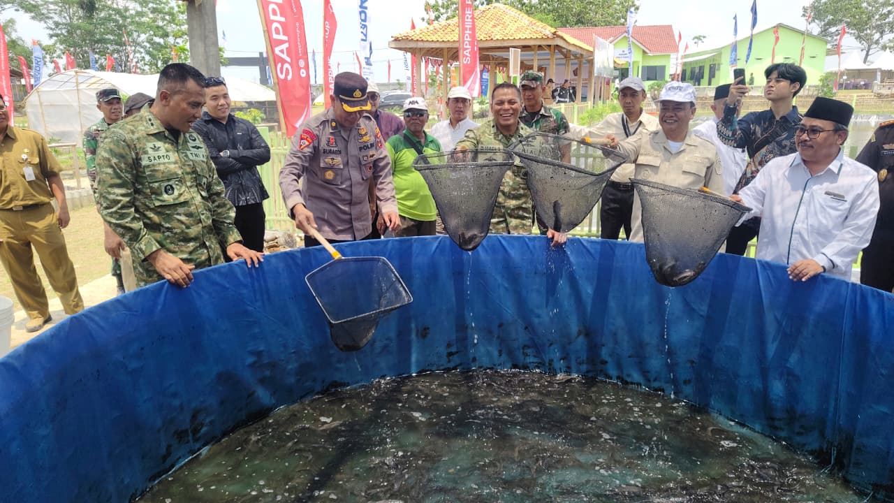 Matalensa—Brebes – Dalam mendukung program swasembada pangan nasional Kodim 0713/Brebes melaksanakan kegiatan kegiatan Tanam Bawang Merah, Tebar Benih Ikan Lele dam Pembukaan Bumi Perkemahan sekaligus Launching Kompi Produksi Kodim 0713/Brebes, bertempat di Lahan Unit KOmpi Produksi Kodim 0713/Brebes, Desa Songgom, Kecamatan Songgom, Brebes, Jawa Tengah. Senin (20/10/2025).