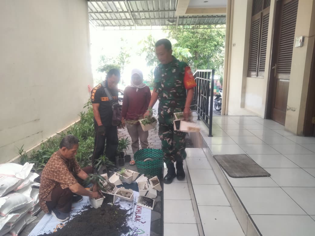 Matalensa- Surakarta – Babinsa Kelurahan Purwodiningratan Koramil 04/Jebres kodim 0735/Surakarta Serka Suparno bersama warga dalam menyiapkan media tanam di pot dan polybag merupakan bentuk pendampingan ketahanan pangan yang aktif dilakukan untuk memanfaatkan lahan sempit atau pekarangan. Senin (20/04/2026)
