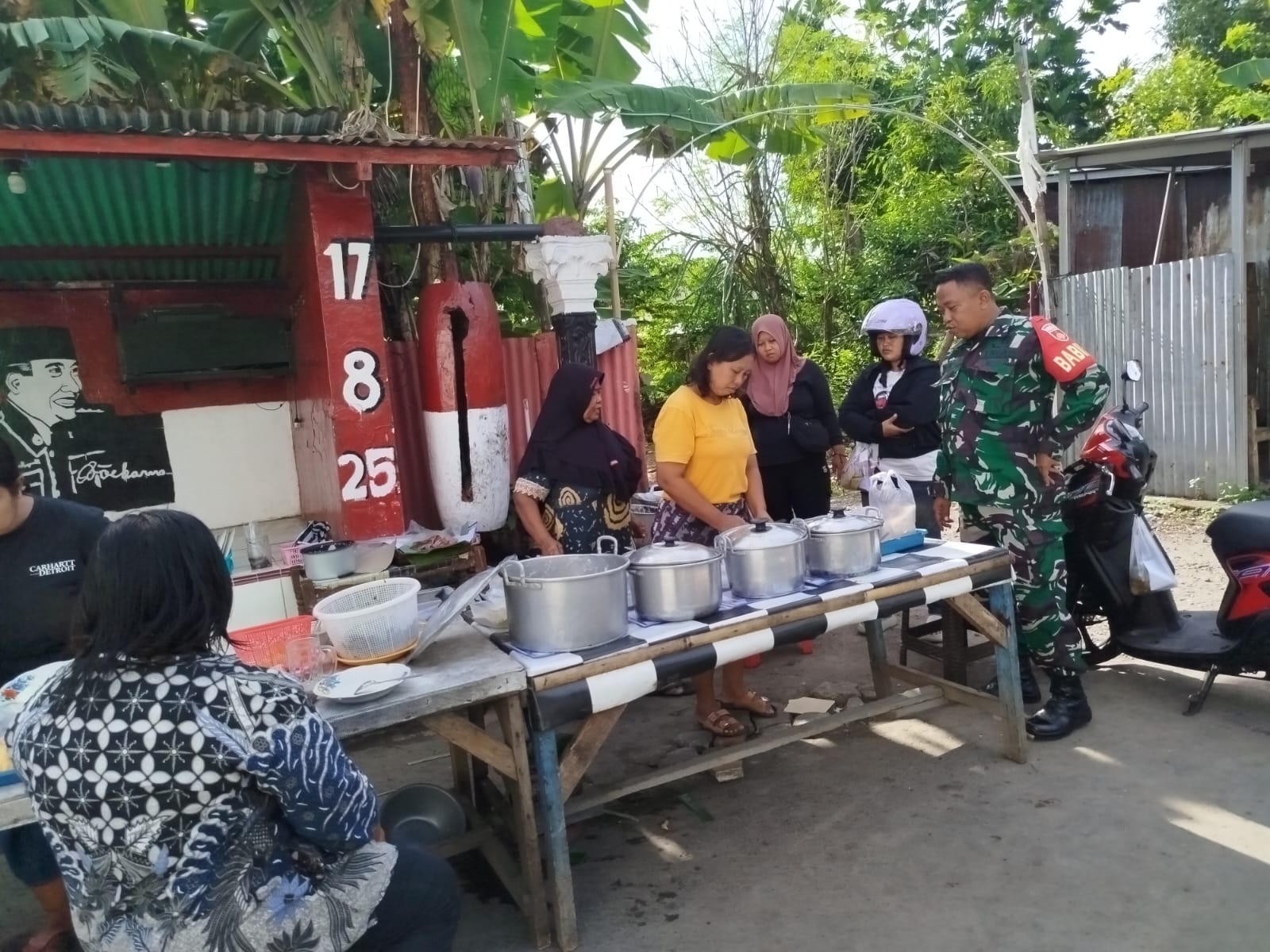 Matalensa- Surakarta – Babinsa Kelurahan Sewu Koramil 04/Jebres Kodim 0735/Surakarta Koptu Sanda Arieswanto menyambangi UMKM pedagang nasi liwet dan Bubur milik Ibu Metik di RT 02 RW 01 Kelurahan Sewu Kecamatan Jebres surakarta, Selasa, (30/12/2025).