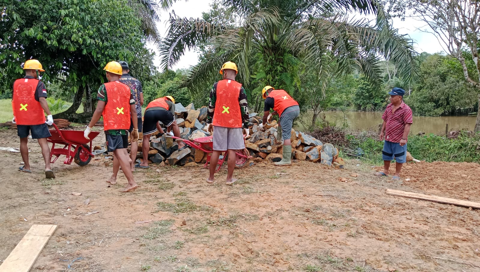 Sejak tibanya alat dan material konstruksi di lokasi, aktivitas pembangunan semakin intensif. Personel dari Kodim 1015/Sampit dan Yonif TP 923/Mentaya bersama unsur lainnya bahu-membahu mengangkut material, menyusun satu demi satu, serta melakukan berbagai pekerjaan teknis di lapangan. Semangat gotong royong terlihat jelas dalam setiap tahapan pengerjaan yang dilakukan.