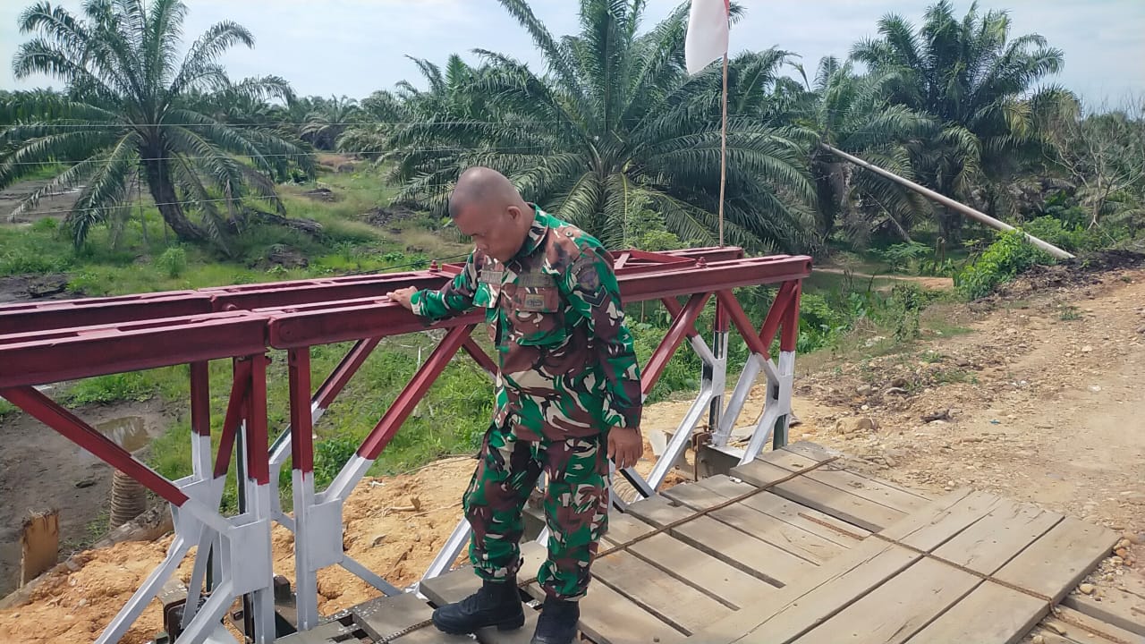Pastikan Akses Lancar, Babinsa Cek Jembatan Bailey Penghubung Desa