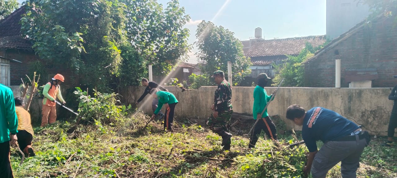 Dalam Mewujudkan lingkungan yang bersih dan asri, Babinsa Kelurahan Joyotakan Serma Rumbawa bersama perangkat kelurahan joyotakan melaksanakan kerja bakti pembersihan rumput liar disekitar Kantor kelurahan Joyotakan yang sudah panjang dan tidak terawat.