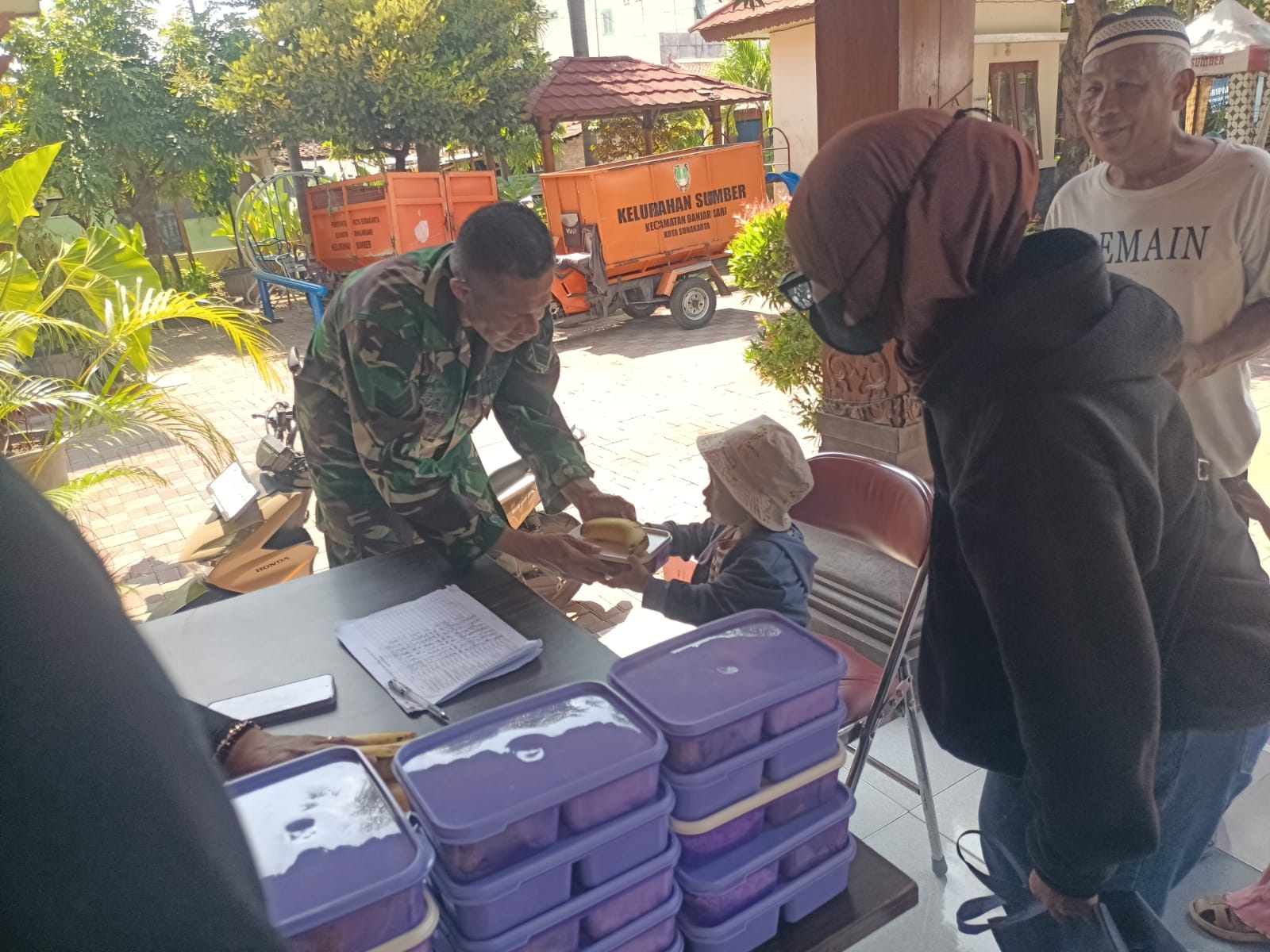 Matalensa- Surakarta – Babinsa Kelurahan Sumber Koramil 02/Banjarsari Kodim 0735/Surakarta Serka Yusuf dan Sertu Dadan mendapingi kader posyandu kelurahan Sumber melaksanakan pembagian makanan tambahan (PMT) kepada Balita. Bartempat di pendhopo kelurahan Sumber jl. kahuripan No 8 kelurahan Sumber Kecamatan Banjarsari, Rabu (10/12/2025).