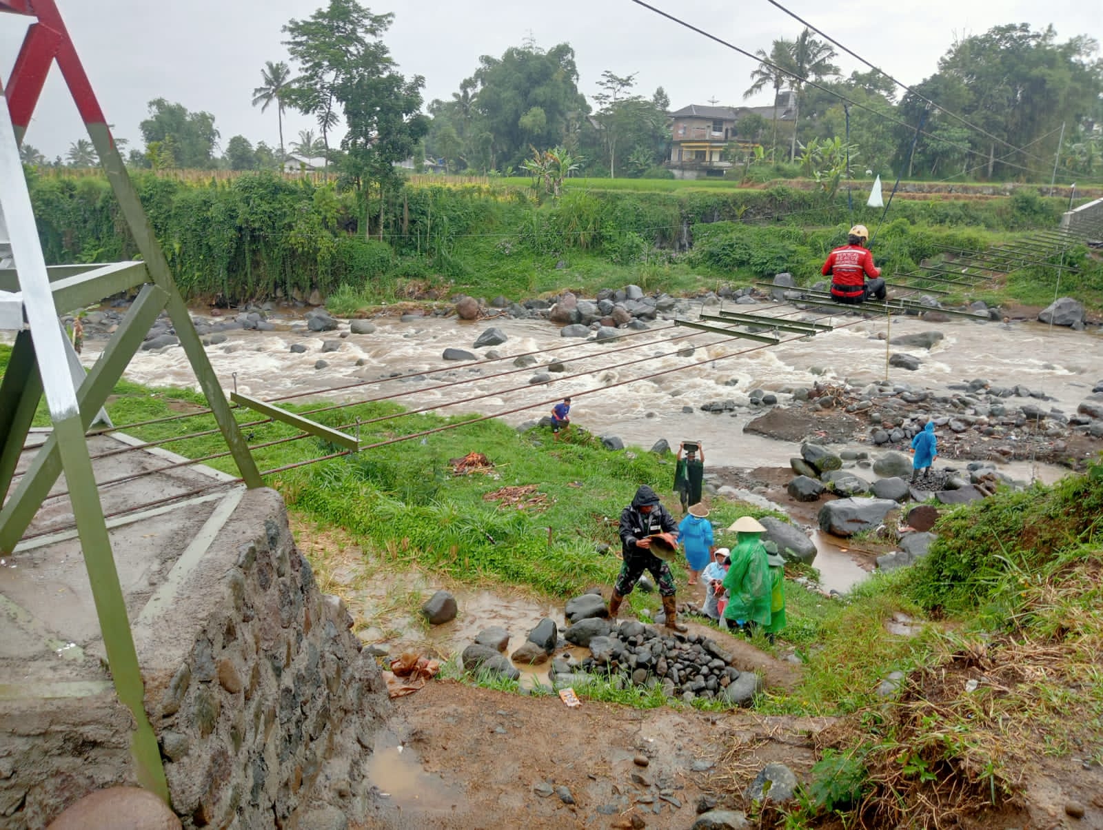 Matalensa || Wonosobo – Pengerjaan Jembatan Gantung Garuda di wilayah Kodim 0707/Wonosobo terus dikebut meskipun dilaksanakan pada hari libur dan di tengah cuaca hujan. Kondisi tersebut tidak menjadi kendala berarti bagi personel TNI bersama warga, demi percepatan pembangunan agar jembatan segera dapat dimanfaatkan oleh masyarakat. (11/1/2025)