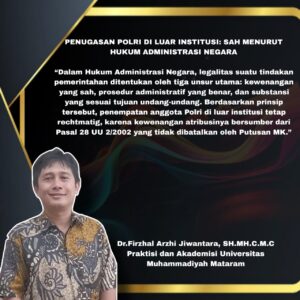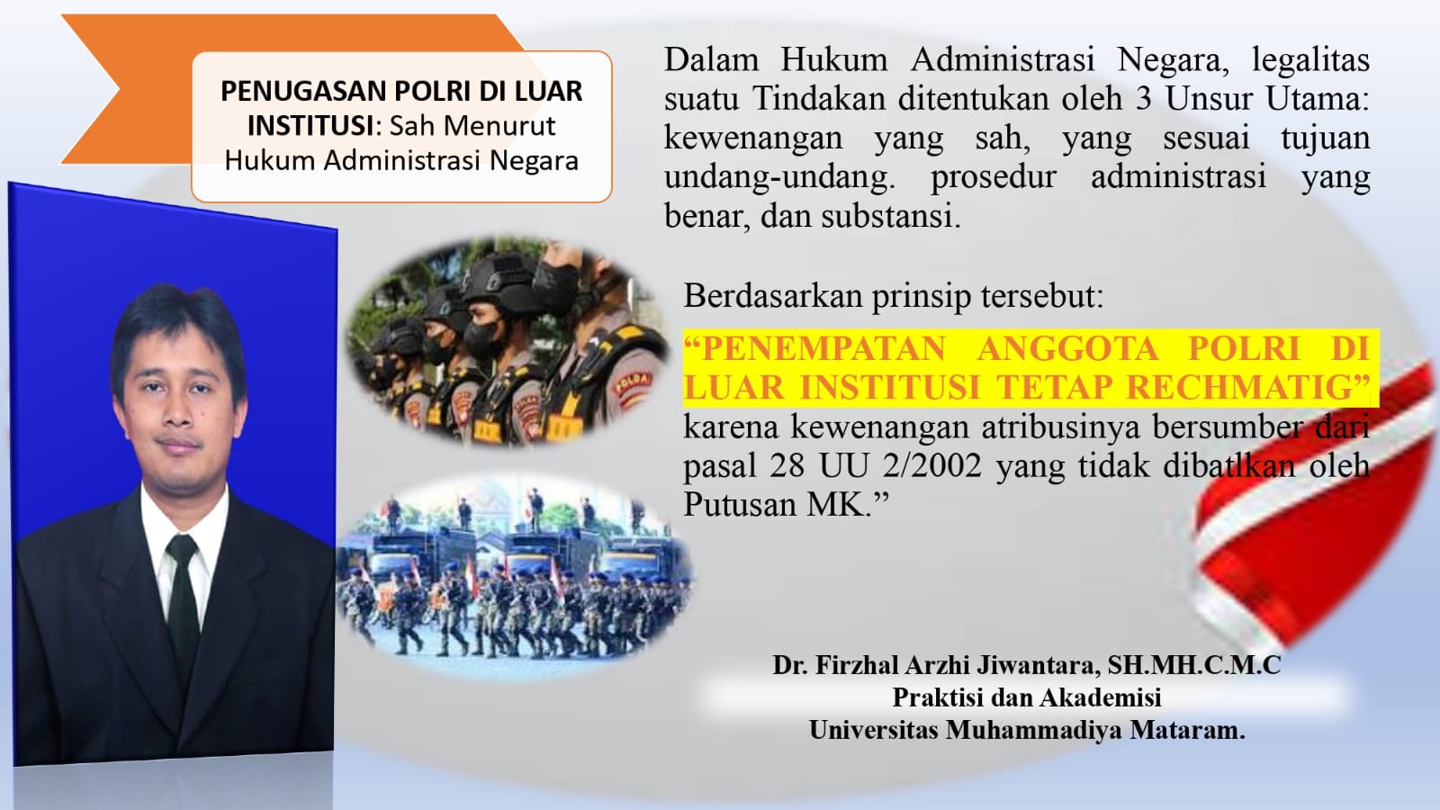 Berdasarkan prinsip tersebut, penempatan anggota Polri di luar institusi tetap rechtmatig, karena kewenangan atribusinya bersumber dari Pasal 28 UU 2/2002 yang tidak dibatalkan oleh Putusan MK.”