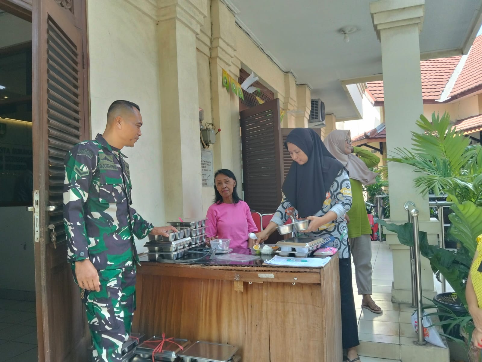 Matalensa- Surakarta – Babinsa kelurahan Serengan Koramil 03/Serengan Kodim 0735/Surakarta Serda Djoko Riyadi mendampingi dan membagikan Makan Bergizi Gratis (MBG) yang digelar di serambi Kelurahan ,Serengan, Kamis (12/03/2026)