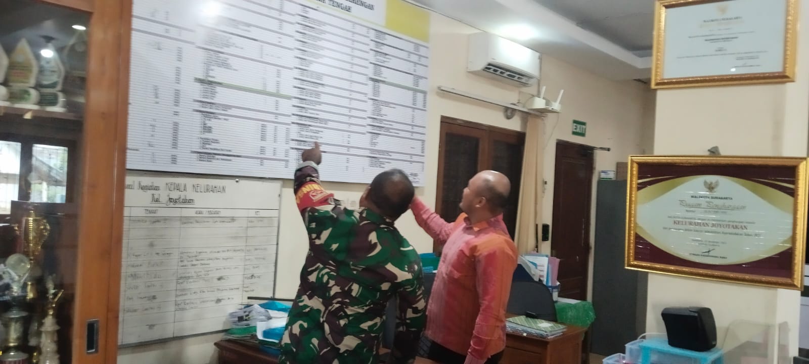 Matalensa- Surakarta, Babinsa Kelurahan Joyotakan Koramil 03/Serengan Kodim 0735/ Surakarta, Serma Rumbawa melaksanakan Pengumpulan Data Teritorial ( Puldata Ter ) bersama pegawai kelurahan bertempat di Kantor Kelurahan Joyotakan Serengan Kota Surakartah, Kamis pukul 10.00 Wib (04/12/2025)