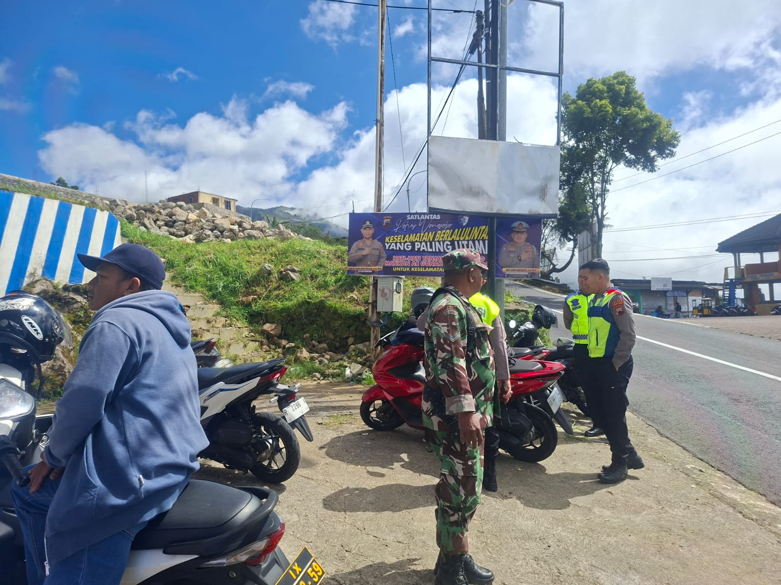 Matalensa || Wonosobo – Personel Kodim 0707/Wonosobo bersama instansi terkait dan relawan melaksanakan siaga di sejumlah pos pengamanan guna menciptakan kondisi wilayah yang aman dan kondusif menjelang Hari Raya Idulfitri. Kegiatan ini merupakan bagian dari upaya terpadu dalam memberikan rasa aman dan nyaman bagi masyarakat selama momentum mudik dan perayaan Lebaran. (18/3/2026)