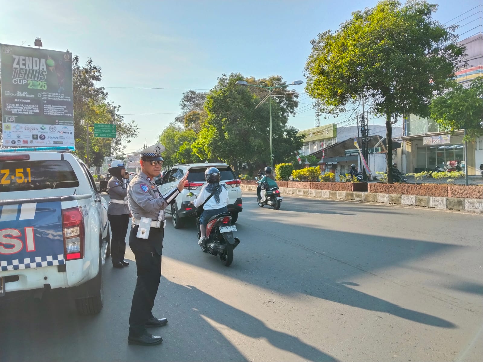 Selain memberikan imbauan, petugas juga membagikan brosur edukatif dan melakukan dialog singkat dengan pengendara serta pelajar yang melintas, agar pesan keselamatan dapat tersampaikan secara langsung dan mudah dipahami.