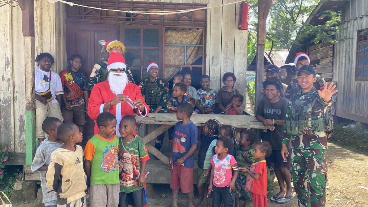 Matalensa- Bulangkop, Pegunungan Bintang — Dalam rangka menyambut dan memperingati Hari Raya Natal, Pos Bulangkop Satgas Pamtas RI–PNG Yonif 751/Vira Jaya Sakti (VJS) melaksanakan kegiatan sosial berupa pembagian bingkisan Natal kepada masyarakat Kampung Bulangkop. Kegiatan ini menjadi wujud kepedulian prajurit TNI untuk menghadirkan sukacita, mempererat kebersamaan, serta memperkuat kemanunggalan TNI–rakyat di wilayah perbatasan. (Rabu,1/12/2026).