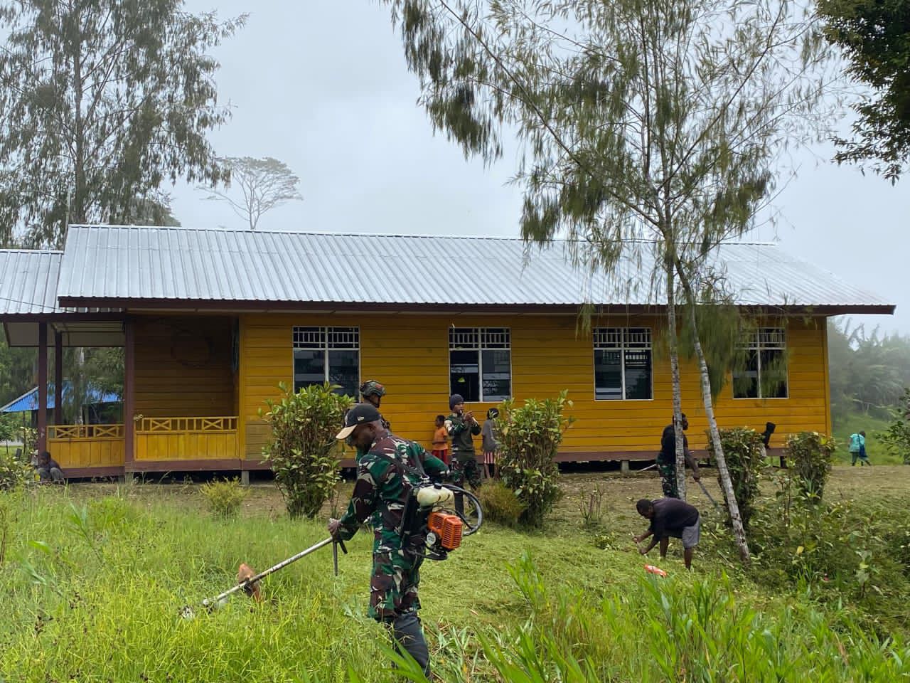 Matalensa- Bulangkop, Pegunungan Bintang — Pos Bulangkop Satgas Pamtas RI–PNG Yonif 751/Vira Jaya Sakti (VJS) bersama masyarakat Kampung Bulangkop melaksanakan karya bakti pembersihan gereja dalam rangka menyambut Perayaan Hari Natal 25 Desember 2025. Kegiatan gotong royong ini menjadi wujud kebersamaan TNI dan warga dalam menyiapkan rumah ibadah agar lebih bersih, rapi, dan nyaman digunakan saat rangkaian ibadah Natal. (Minggu, 21/12/2025).