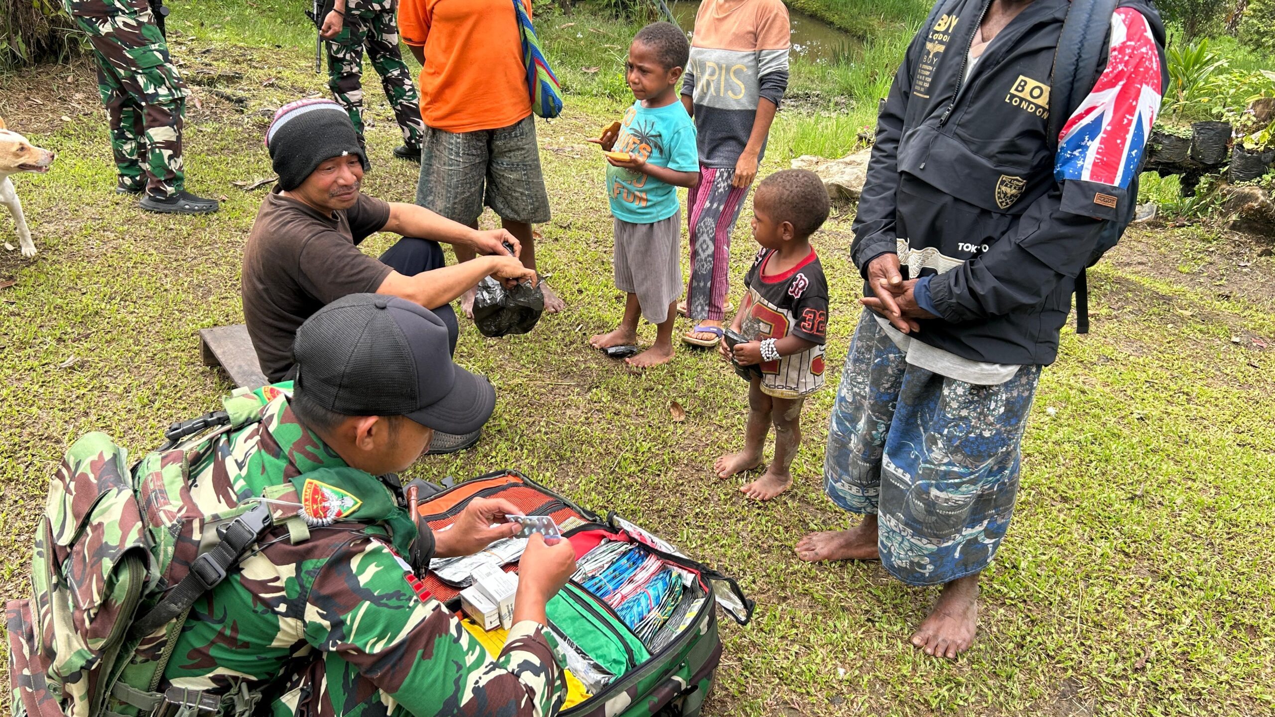 Matalensa- Polsam, Pegunungan Bintang – Pos Okpol Satgas Swasembada Yonif 751/Vira Jaya Sakti (VJS) melaksanakan kegiatan anjangsana ke Kampung Polsam yang dirangkai dengan pelayanan pengobatan gratis bagi masyarakat. Kegiatan ini menjadi wujud kepedulian TNI dalam mendekatkan layanan kesehatan dasar sekaligus mempererat silaturahmi dan kemanunggalan TNI–rakyat di wilayah perbatasan. (Sabtu,14/3/2026).