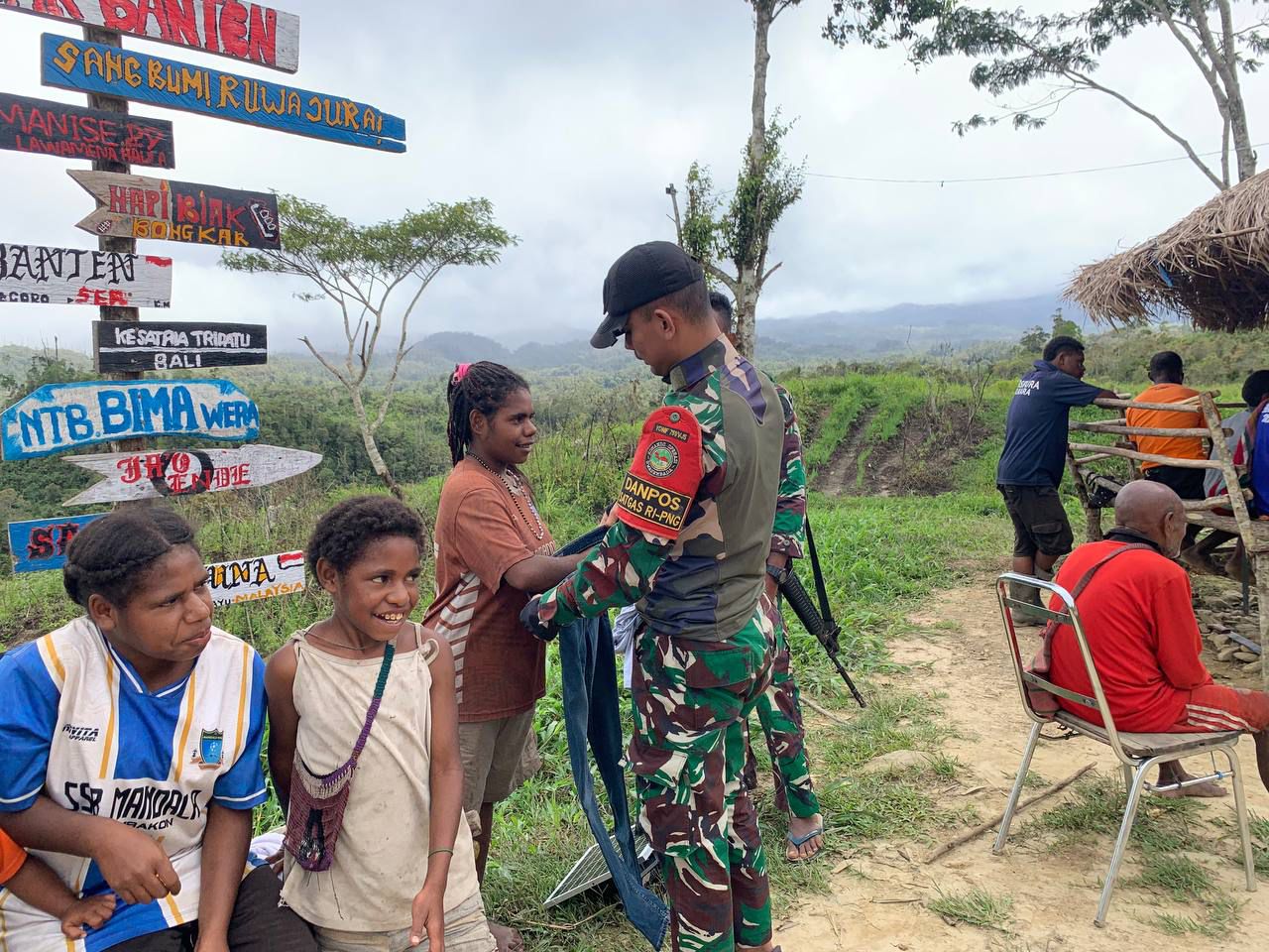 Matalensa- Kakopom, Pegunungan Bintang – Pos Parim Satgas Yonif 751/VJS melaksanakan kegiatan Teritorial Pembagian Pakaian kepada masyarakat Kampung Kakopom sebagai wujud Kasih Persaudaraan kepada masyarakat dalam menyambut Natal 25 Desember tahun 2025. Kegiatan ini sebagai wujud keikutsertaan TNI bersama Masyarakat dalam menyambut Natal tahun 2025 di wilayah binaan Pos Parim.(Senin, 22/12/2025).