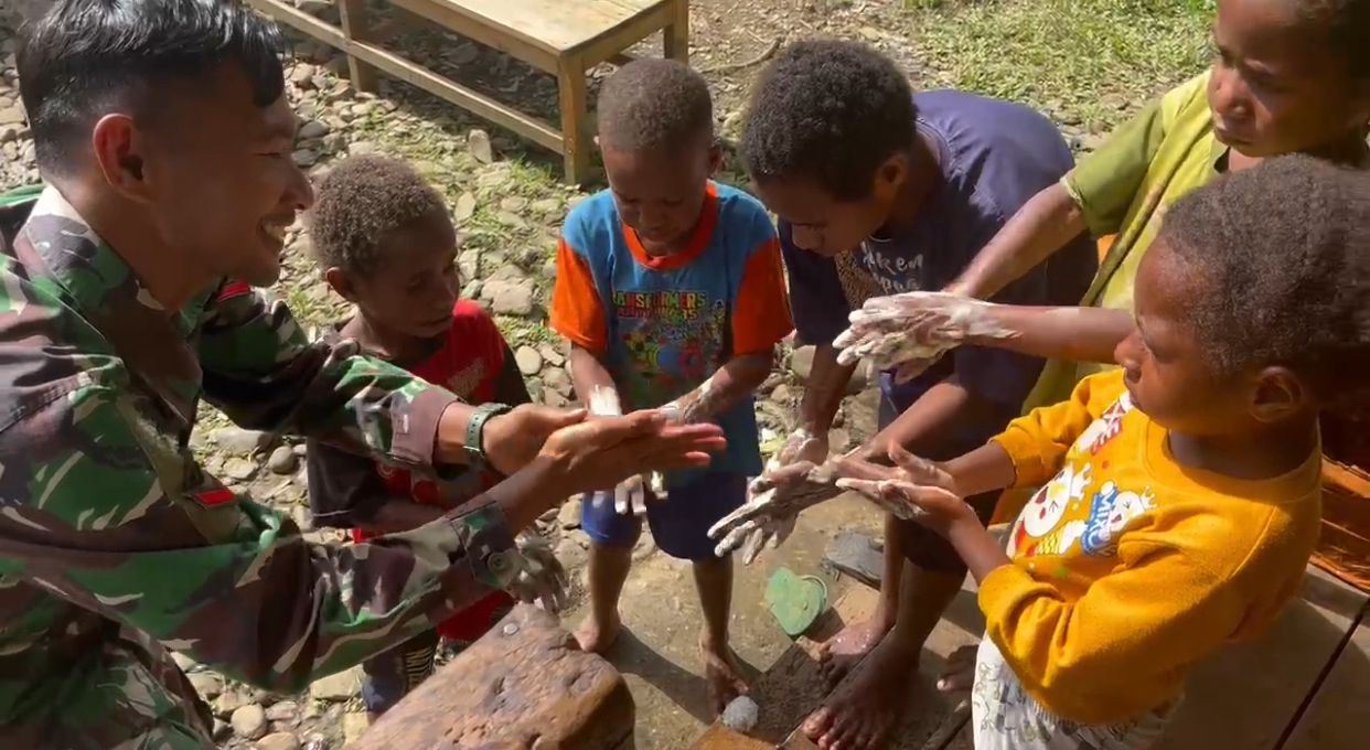 Matalensa—Kampung Bringin, Papua Pegunungan— Pos Selal melaksanakan pembinaan teritorial bertema hidup bersih dan sehat bagi anak-anak Kampung Bringin. Kegiatan ini dilakukan oleh salah satu anggota Pos Selal Kopda Galuh dengan pendekatan praktik langsung, mulai dari cara memotong kuku yang benar, membiasakan cuci tangan pakai sabun sebelum makan dan setelah beraktivitas, hingga ajakan makan bersama untuk memenuhi kebutuhan gizi seimbang (Senin,6/10/2025).