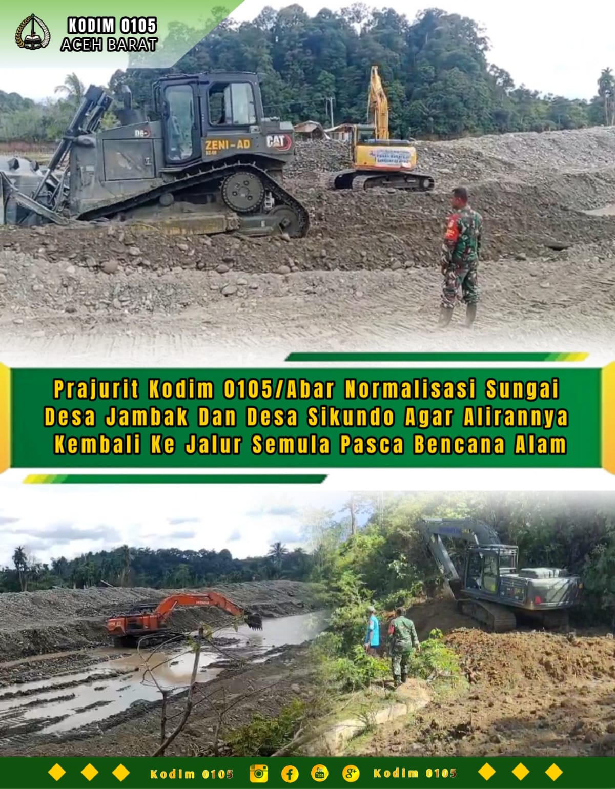 Dandim 0105/Abar Letkol Inf S Kembaren,S.E.,M.I.P.,CFrA., mengatakan bahwa pengerukan sungai dan pembuatan jalan ini merupakan bentuk kepedulian, komitmen dan tanggung jawab TNI AD dalam membantu masyarakat yang terdampak bencana alam.