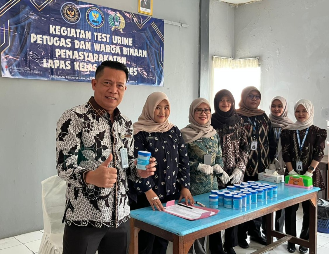 Matalensa || BREBES — Lembaga Pemasyarakatan (Lapas) Kelas IIB Brebes terus perkuat pengawasan guna menciptakan lingkungan Pemasyarakatan yang bersih dari penyalahgunaan narkoba. Salah satu langkah konkret yang dilakukan yakni pelaksanaan tes urine mendadak terhadap petugas dan Warga Binaan Pemasyarakatan (WBP). Test urine massal terhadap 121 narapidana kasus narkotika dan 62 pegawai, Jumat (9/1). Hasilnya, seluruh peserta dinyatakan negatif.