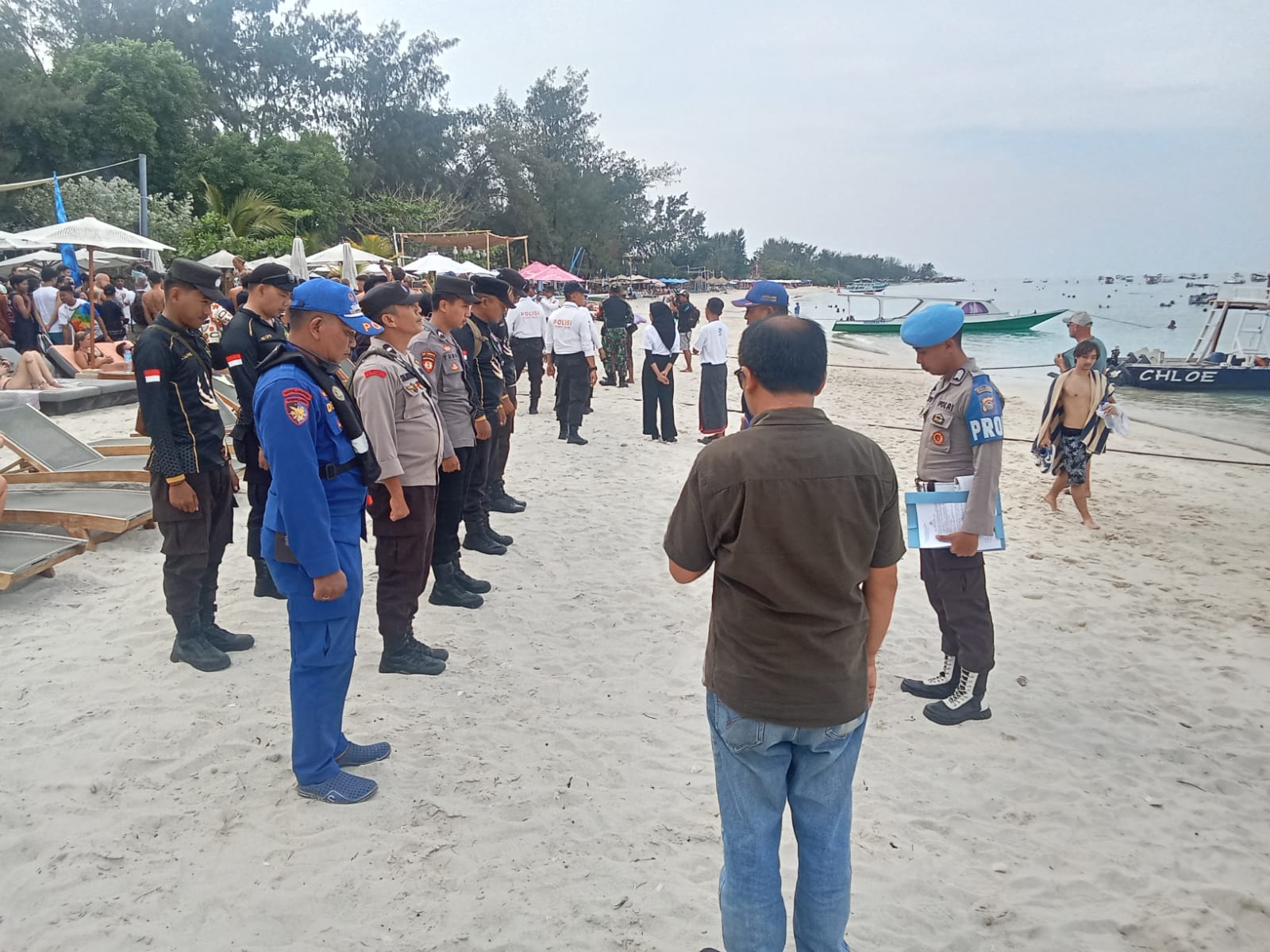 Kasat Polairud Polres Lombok Utara Polda NTB, AKP I Gusti I Made Suarjaya pimpin langsung, personel berseragam biru turun langsung dipesisir Pantai Gili Trawangan, Kecamatan Pemenang. Mereka memastikan area perairan tetap steril dan aman, baik bagi para atlet yang berjuang dalam tiga disiplin olahraga, renang, bersepeda dan lari, maupun bagi masyarakat dan wisatawan yang memadati lokasi.