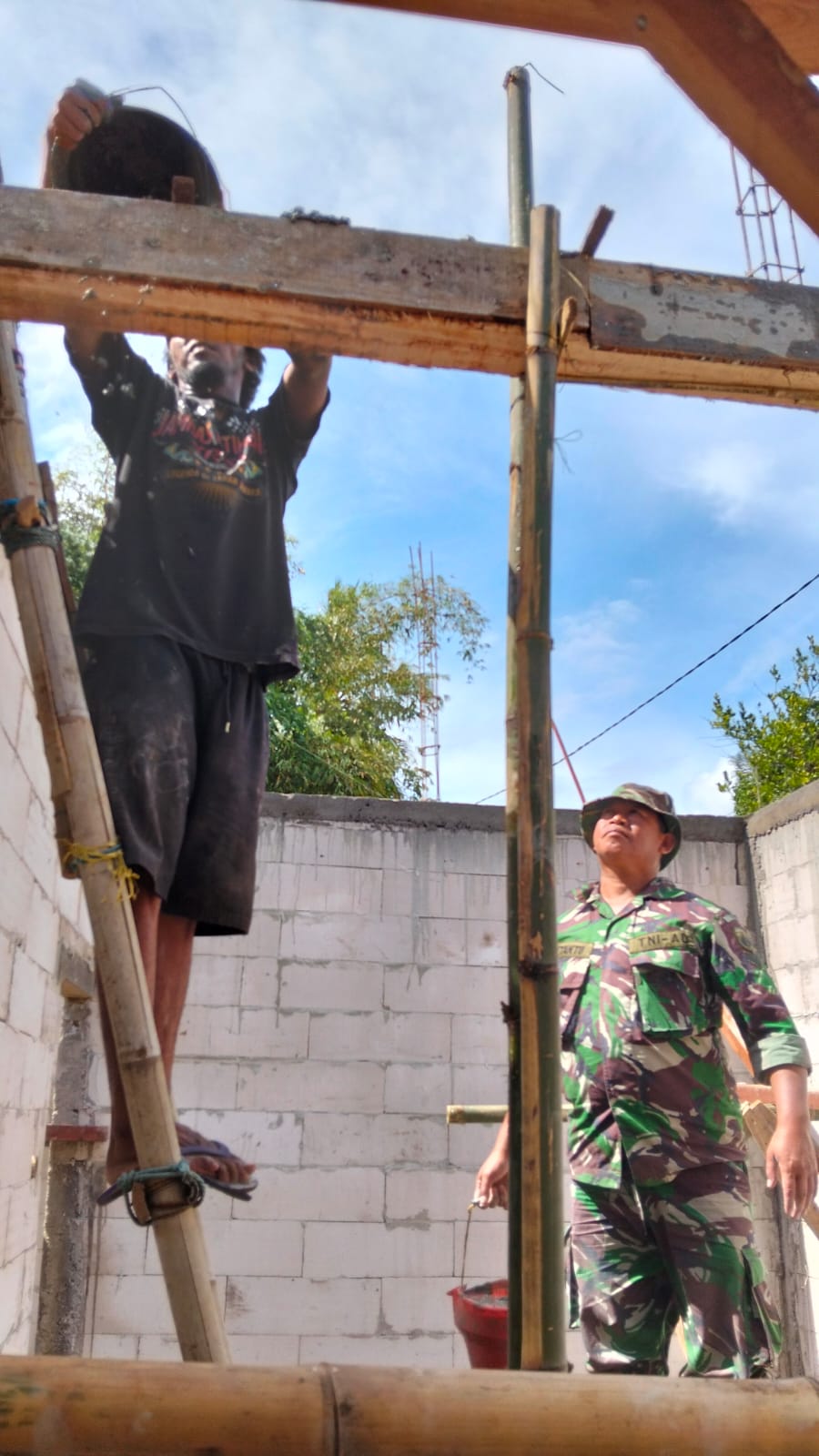 “Pekerjaan kali ini difokuskan pada pemasangan besi dan pengecoran sloof atas. Warga turut aktif membantu mulai dari mengaduk campuran hingga mengangkat material. Inilah bentuk nyata kemanunggalan TNI dengan rakyat,” ujarnya.