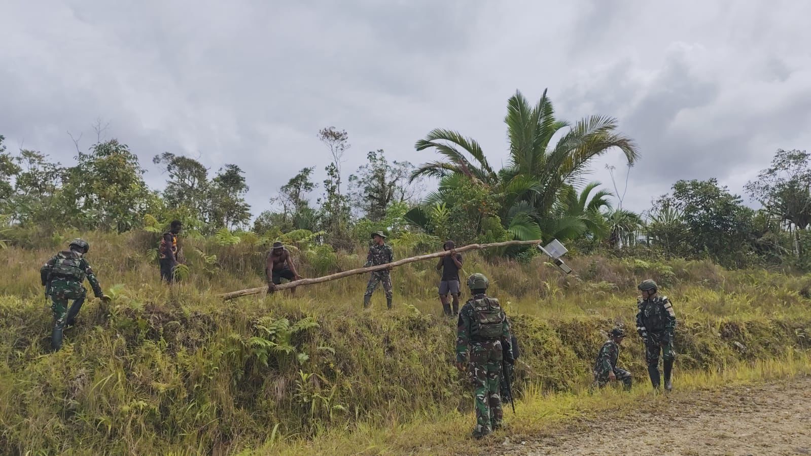 Matalensa- Kampung Omor & Bitipding, Distrik Tarup, Pegunungan Bintang— Satgas Pamtas RI–PNG Yonif 751/Vira Jaya Sakti (VJS) yang dipimpin Letda Inf Elpidius Rayson bersama personel Pos Tarub melaksanakan pemasangan lampu jalan di dua kampung binaan untuk memudahkan aktivitas masyarakat pada malam hari serta meningkatkan rasa aman di lingkungan.(Kamis,27/11/2025).