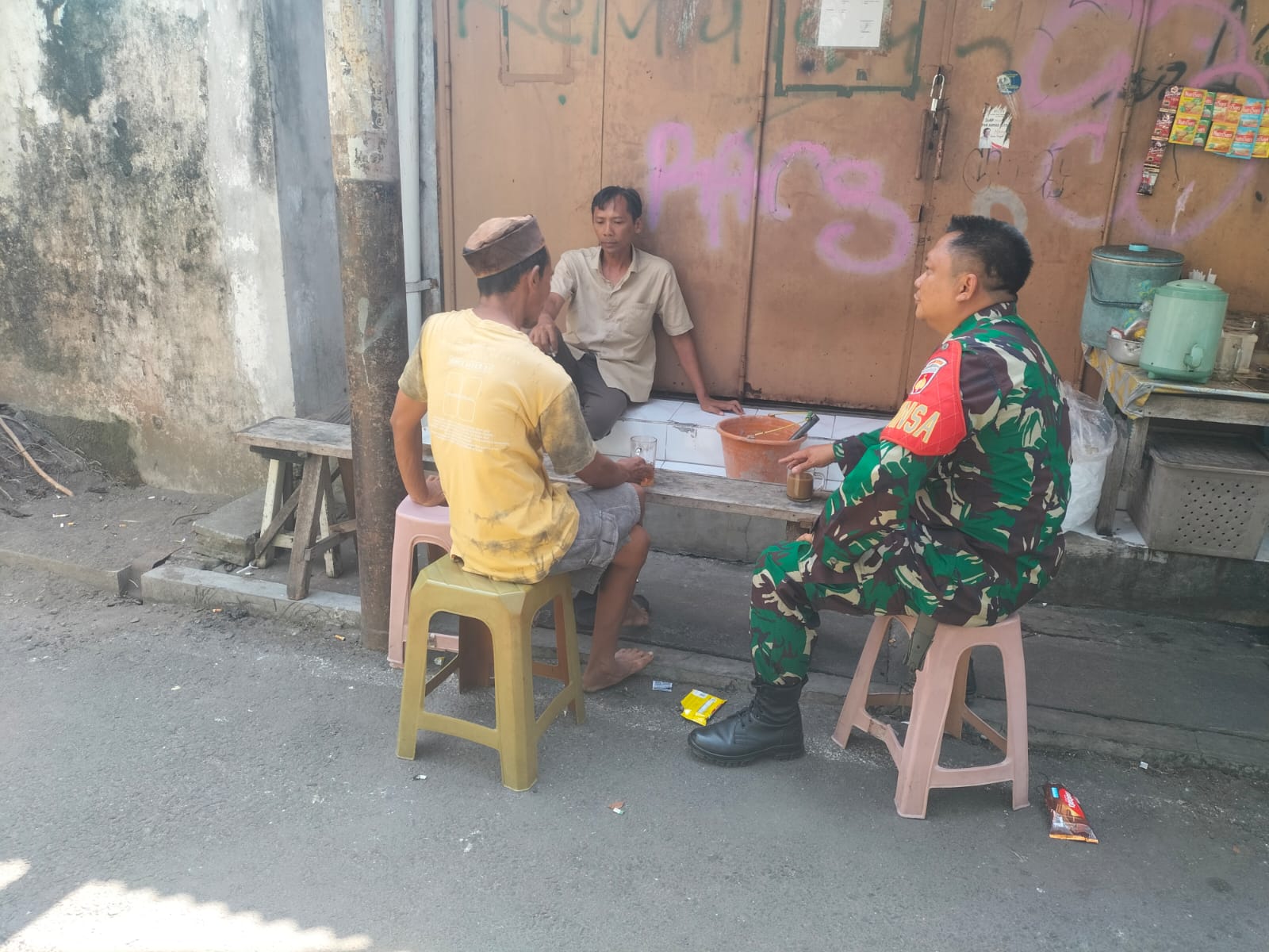 Matalensa || Surakarta, Babinsa Kelurahan Kemlayan Koramil 03/Serengan Kodim 0735/Surakarta Serka Priyanto Komsos dengan duduk bersama sambil ngobrol santai dengan warga Bapak Herman warga RT 02 RW 01 Kemlayan Serengan Kota Surakarta, Selasa Pukul 10.00 Wib (16/12/2025)