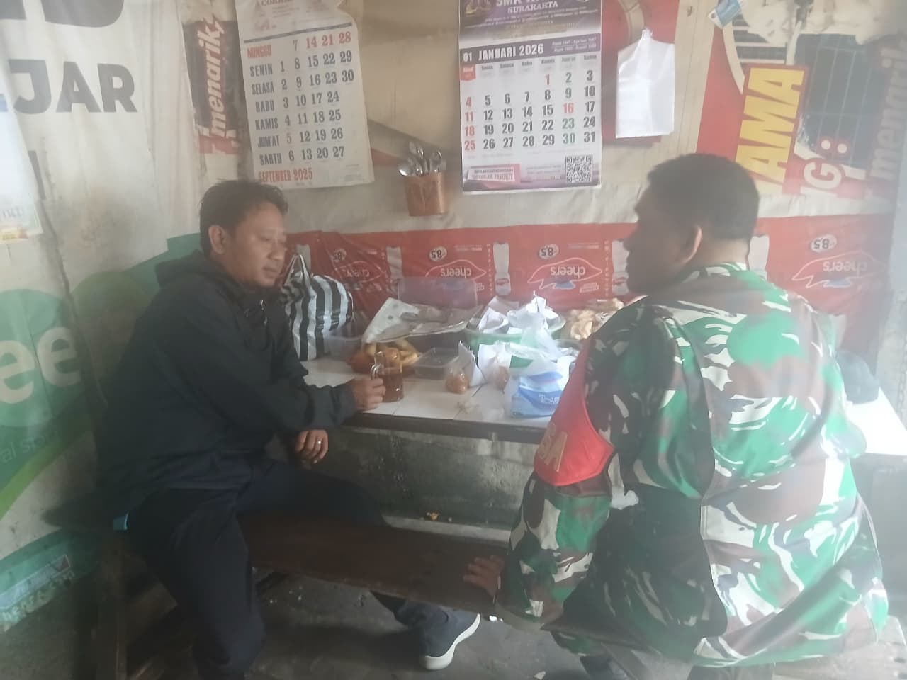 Sembari Bincang Santai & Minum Kopi, Babinsa Jebres Selipkan Pesan Jaga Keamanan Lingkungan