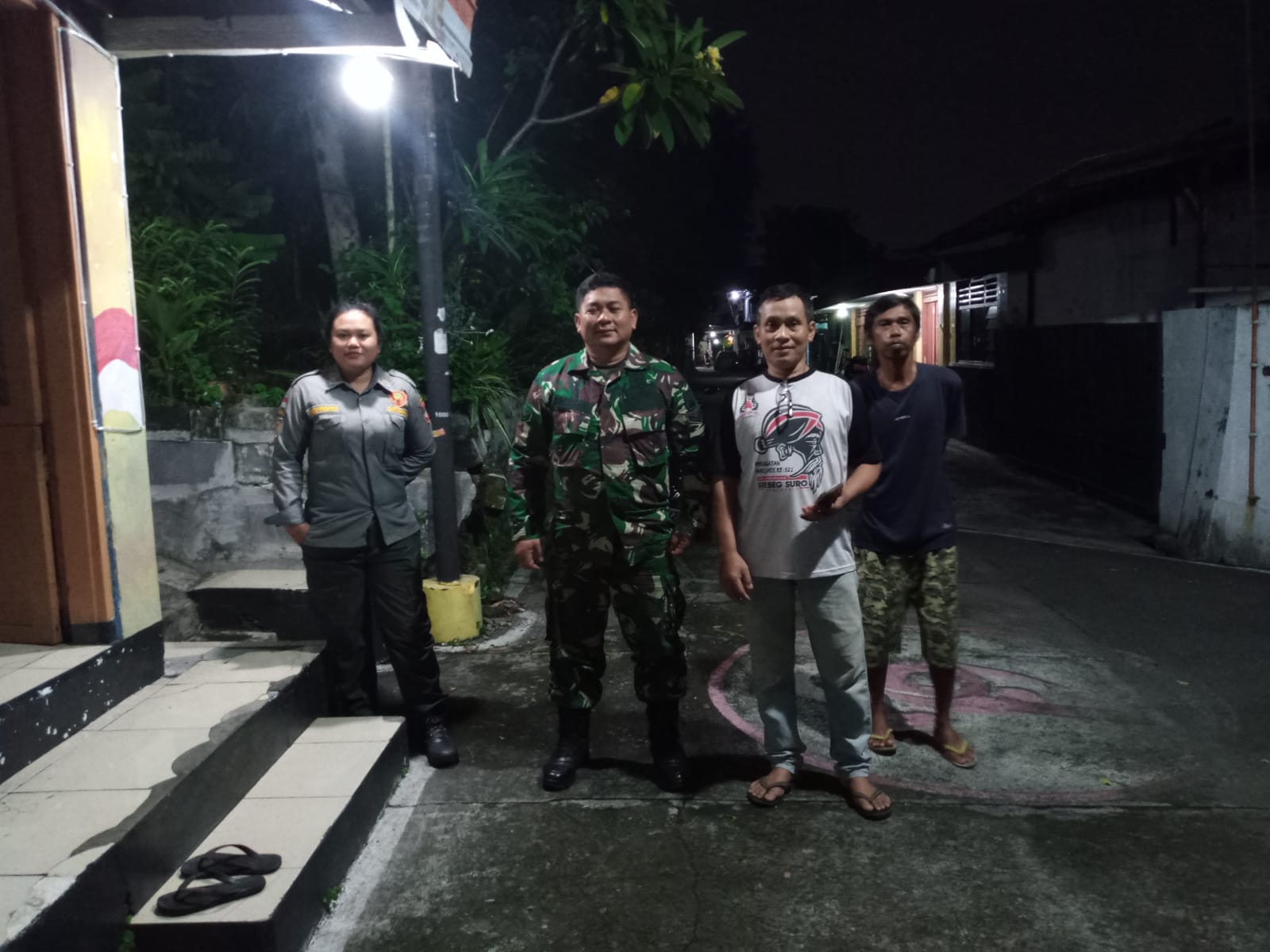 Matalensa- Surakarta, Piket Koramil 03/Serengan Kodim 0735/Surakarta Sertu Rochani melaksanakan Patroli Malam bersama Satlinmas di seputaran wilayah Kecamatan Serengan Kota Surakarta, (03/12/2025)