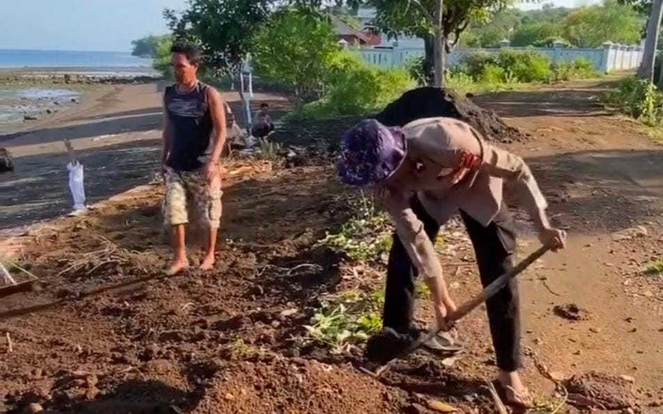 Kegiatan yang dimulai sejak pukul 08.00 WITA ini difokuskan pada pembersihan sampah, penataan area pantai, serta pembuatan fasilitas sederhana untuk pengunjung.