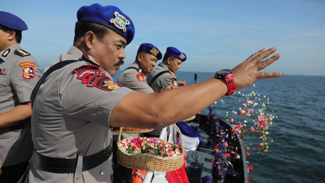 Dimulai dengan pembukaan upacara Tabur bunga di geladak kapal, oleh Kakor polairud Baharkam Polri ditemani Pejabat utama Polarud Baharkam Serta anggota, penghormatan dan mengheningkan cipta sejenak untuk mengenang jasa para pahlawan yang mengabdi di wilayah laut dan udara. Setelah itu dilanjutkan pelarungan bunga ke laut sebagai simbol penghormatan dan penyegaran komitmen.