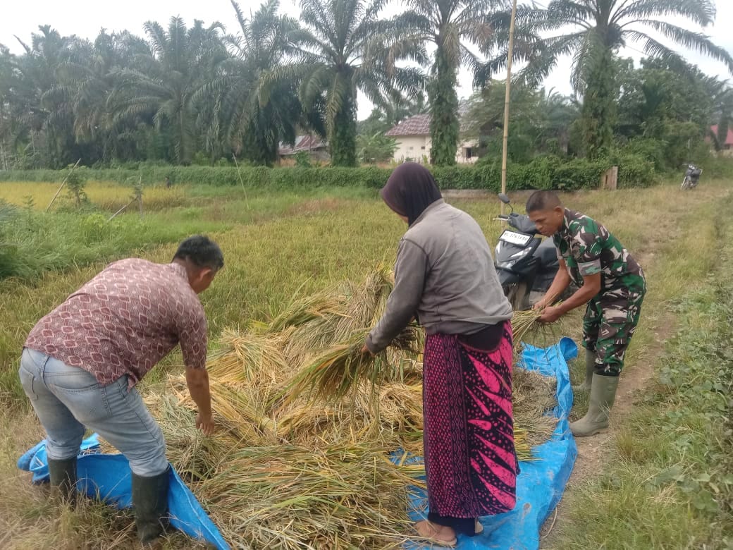 Dalam proses panen tersebut, Serma Khairil Amri turut membantu petani mengumpulkan, membersihkan, dan mengikat padi yang telah dipotong. Pendampingan ini tidak hanya meringankan beban kerja petani, tetapi juga mempercepat proses panen agar hasil tidak terancam kerusakan akibat cuaca yang tidak menentu.