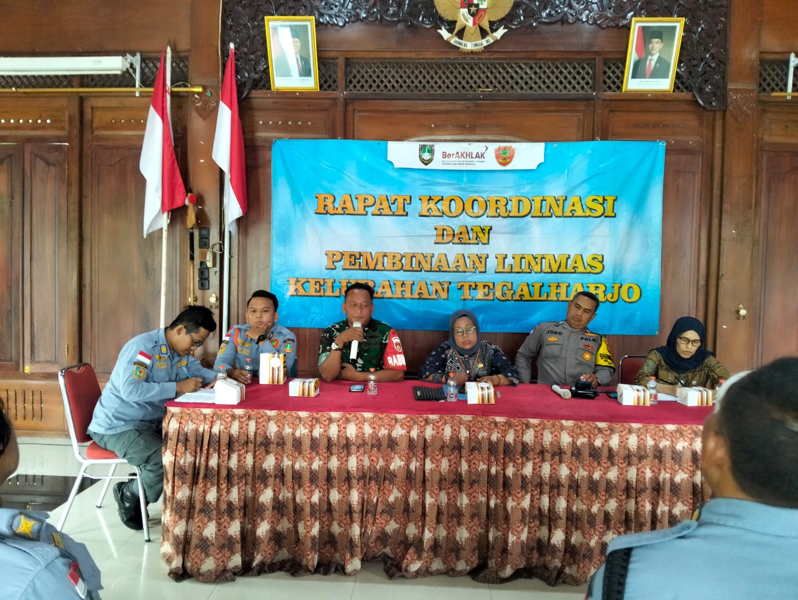 Dalam kegiatan rapat rutin yang dilaksanakan awal tahun ini di Minggu ke dua bulan Januari, Babinsa tegalharjo Serka Joko Riyanto dan Bhabinkamtibmas Aiptu Joko lebowo telah berperan aktif dalam menjaga keamanan dan ketertiban di lingkungan wilayah kelurahan tegalharjo, Guna menciptakan lingkungan yang aman , nyaman.