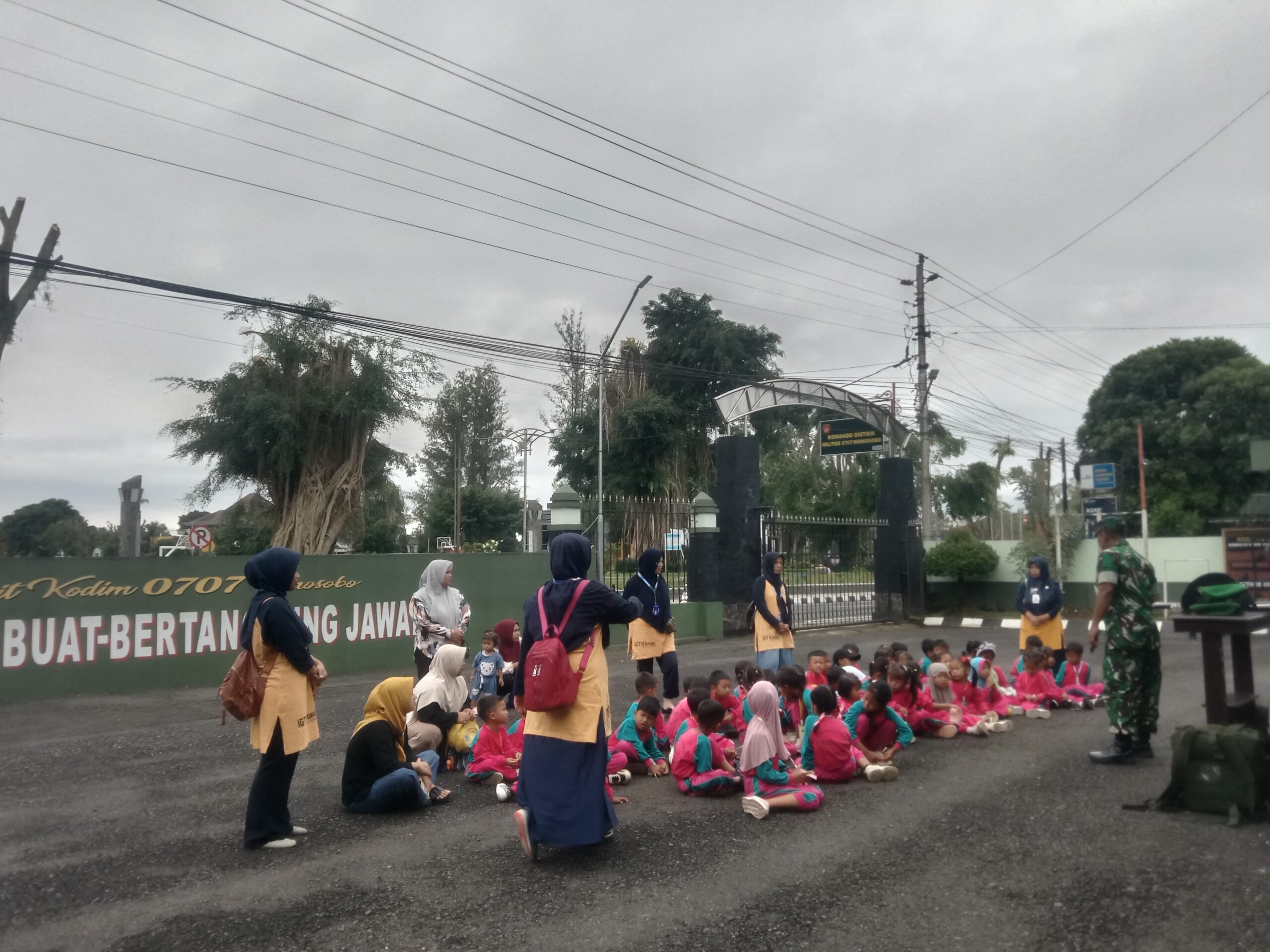 Kunjungan edukatif ini bertujuan memperkenalkan profesi prajurit TNI serta menumbuhkan rasa cinta tanah air dan nasionalisme sejak usia dini.Kedatangan rombongan siswa TK yang didampingi para guru disambut hangat oleh seluruh personel Kodim 0707/Wonosobo. Acara diawali dengan sambutan dan penjelasan materi secara interaktif oleh Sertu Irfa’i, salah satu prajurit Kodim yang dikenal ramah dan dekat dengan anak-anak.