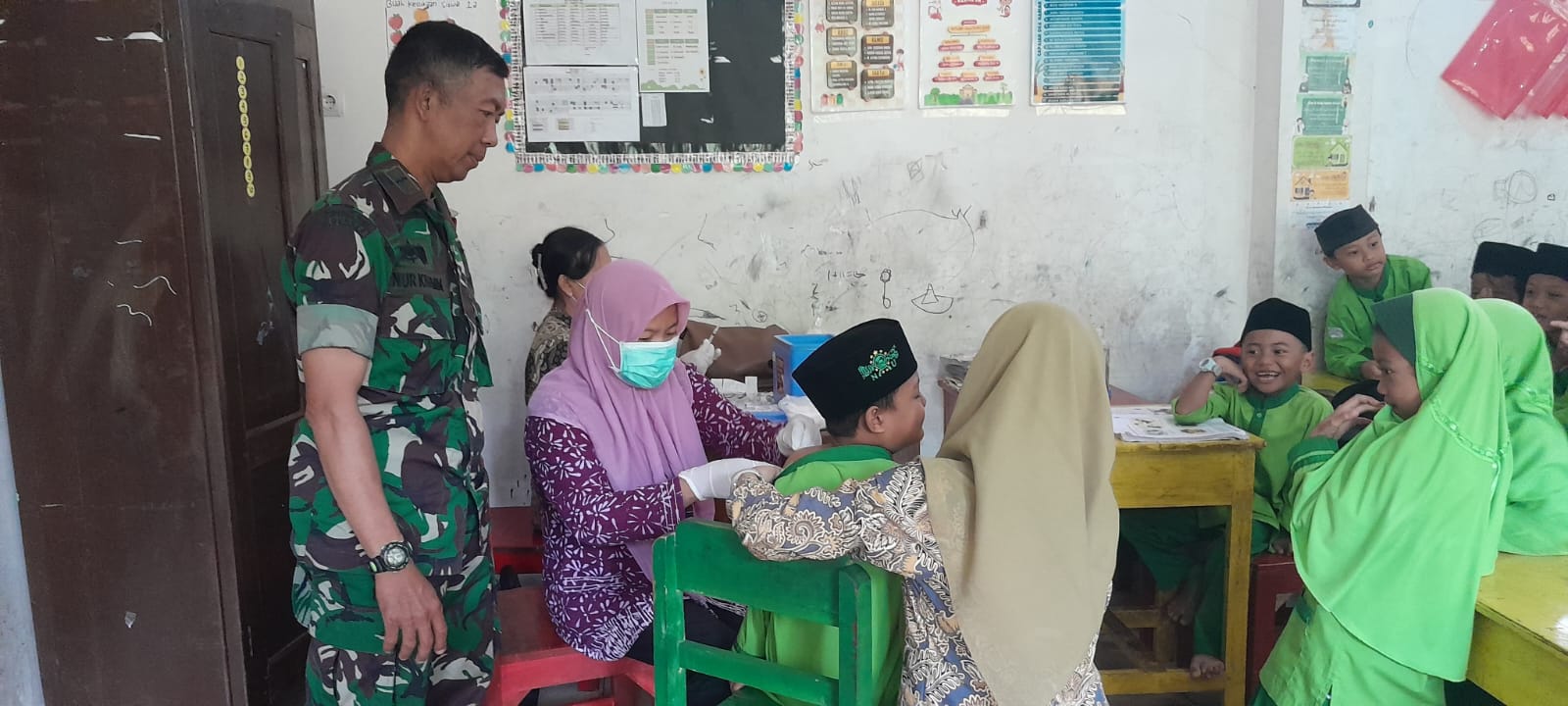Pelda Nur Khamim menegaskan bahwa kehadiran Babinsa dalam kegiatan ini merupakan wujud nyata dukungan TNI terhadap pemerintah daerah dalam upaya meningkatkan derajat kesehatan masyarakat, khususnya bagi anak-anak usia sekolah dasar.