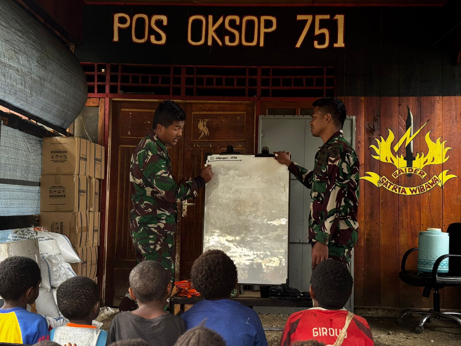 Matalensa || Oksop, Pegunungan Bintang — Pos Oksop Yonif 751/Vira Jaya Sakti (VJS) Satgas Swasembada melaksanakan kegiatan belajar calistung (membaca, menulis, dan berhitung) bagi anak-anak perbatasan di pos. Kegiatan ini menjadi bagian dari pembinaan teritorial yang edukatif sebagai upaya mencerdaskan anak bangsa, sehingga kelak mereka memiliki masa depan yang lebih cerah dan siap menjadi generasi penerus bangsa. (Minggu,22/2/2026).