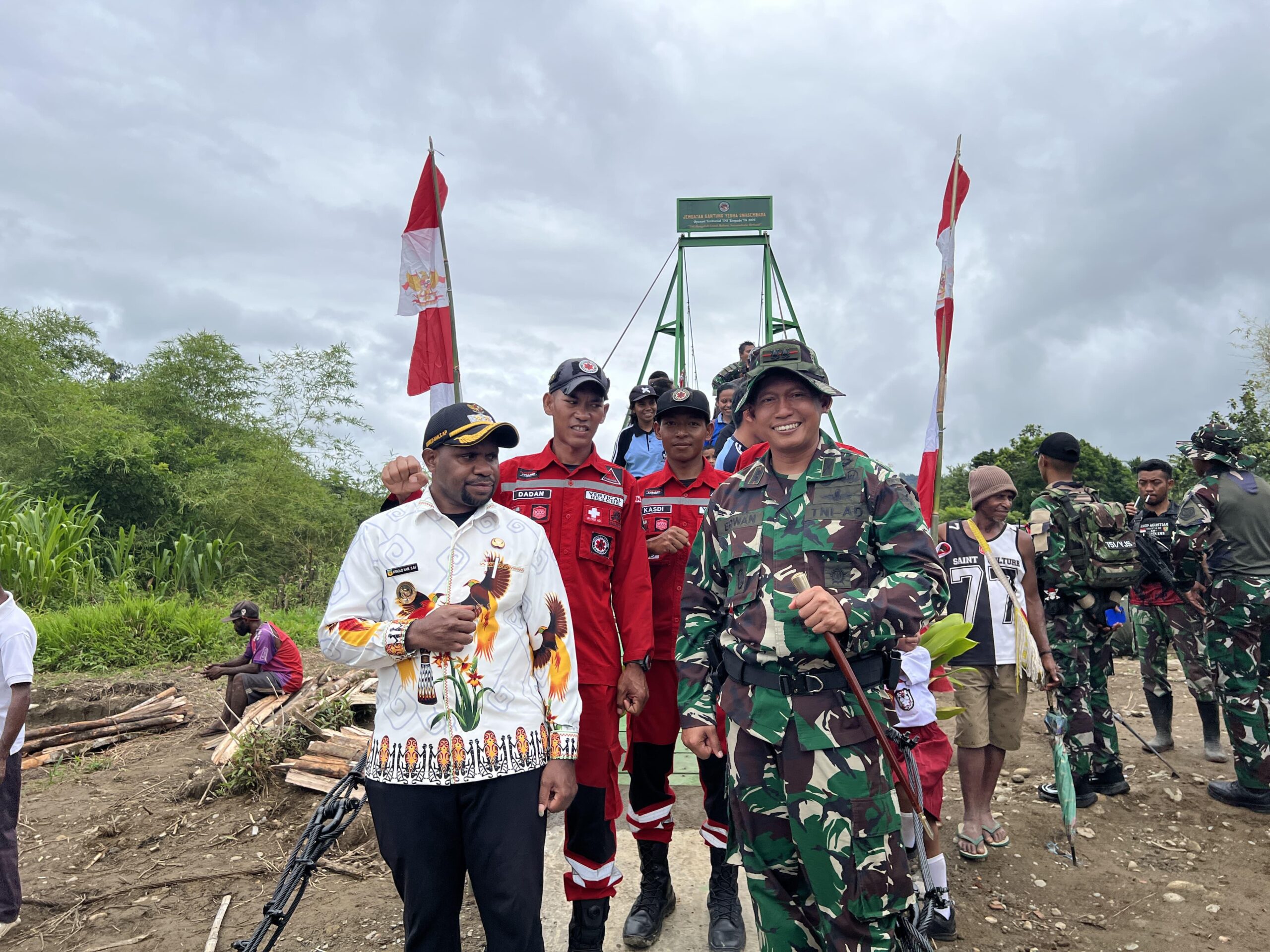 Dansatgas Yonif 751/VJS, Letkol Inf Erwan Harliantoro dalam hal ini mewakili Panglima Koops Swasembada meresmikan Infrastruktur Jembatan Gantung ini yg memiliki Dimensi Panjang 120 meter dan Lebar 1,2 meter yang dibangun oleh Koops Swasembada dengan Pengamanan ketat oleh Satgas Yonif 751/VJS, diharapkan menjawab kebutuhan mobilitas warga yang selama ini terkendala karena aliran sungai yang deras. Sebelum ada jembatan, masyarakat terpaksa menyeberang dengan perahu kecil yang berisiko tinggi, terutama saat debit air meningkat.