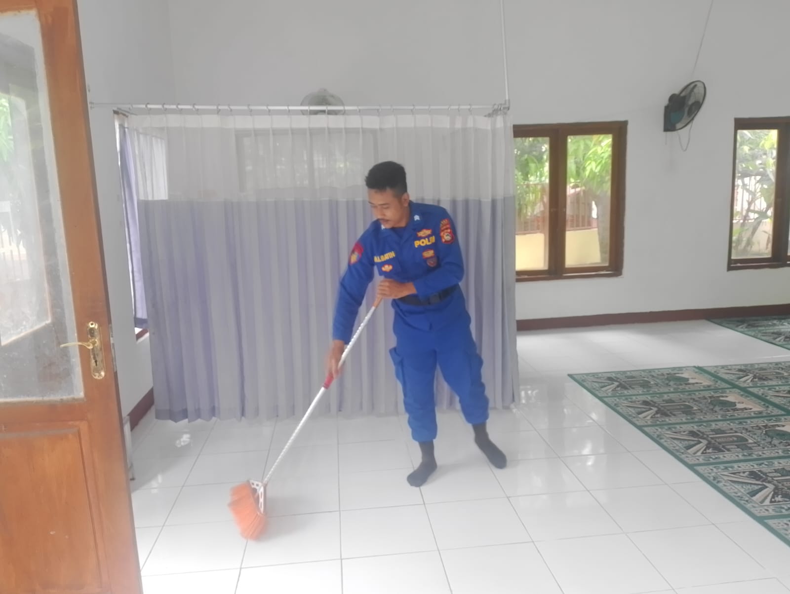 Dengan sigap, para personel membaur membersihkan setiap sudut masjid, mulai dari menyapu halaman, mengepel lantai ruang utama, hingga memastikan area tempat wudhu dalam kondisi bersih dan nyaman bagi jamaah,”terang Kasat.