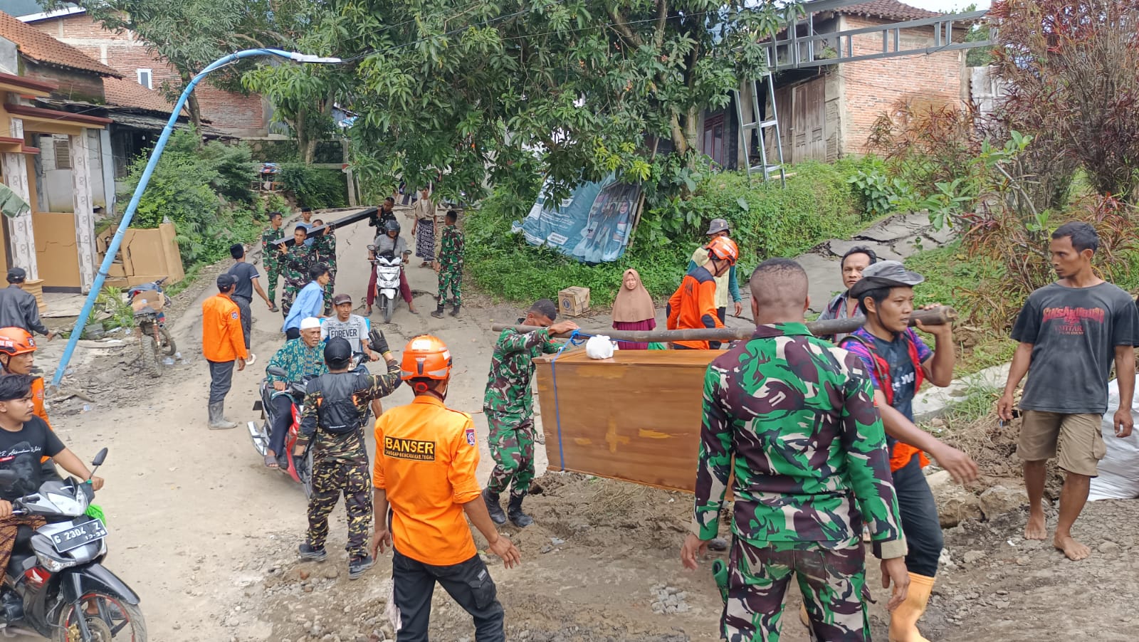 Bencana tanah bergerak yang melanda Desa Padasari telah menyebabkan sejumlah rumah warga mengalami kerusakan struktural yang cukup parah. Mengantisipasi potensi kerusakan lebih lanjut dan jatuhnya korban jiwa, prajurit Yonif 407/PK bersama unsur BPBD, Polri, dan relawan setempat bahu-membahu mengevakuasi barang-barang milik warga ke tempat yang lebih aman.